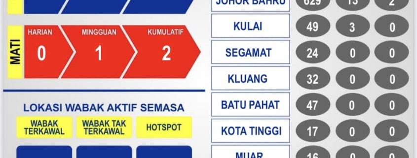 Ia diikuti daerah Kulai yang mencatat kumulatif 49 kes dengan tiga kes baharu dan daerah Ledang dengan 25 kes termasuk satu kes baharu.