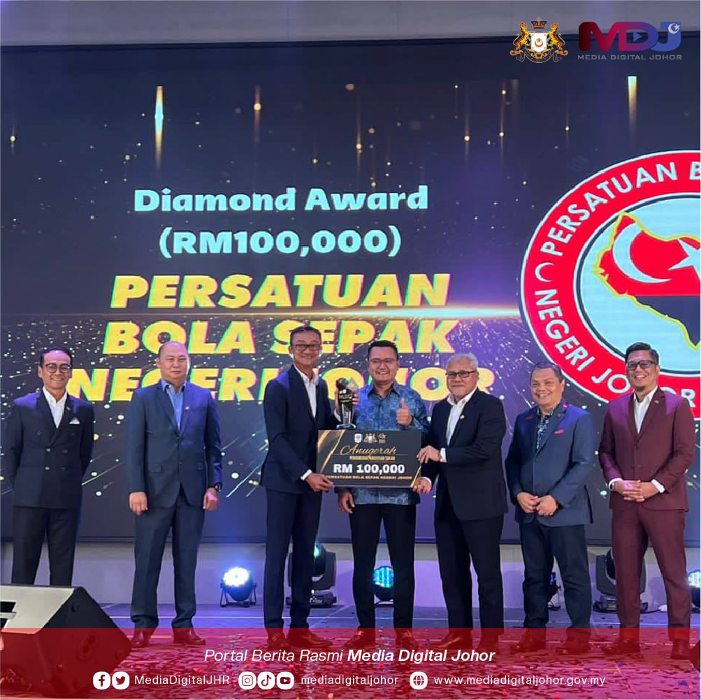 Persatuan Bolasepak Negeri Johor menerima Geran A berjumlah RM100,000 daripada kerajaan negeri sempena Majlis Anugerah Penggredan Persatuan Sukan Negeri Johor 2023, semalam.