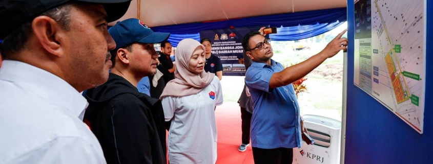 Terdahulu, YAB Dato’ Onn Hafiz Ghazi, Menteri Besar Johor bersama YB Dato’ Mohd Jafni Md Shukor, Pengerusi Jawatankuasa Perumahan dan Kerajaan Tempatan Negeri Johor meninjau tapak projek pembangunan Residensi Bangsa Johor di Parit Jawa, Muar, Sabtu lalu.