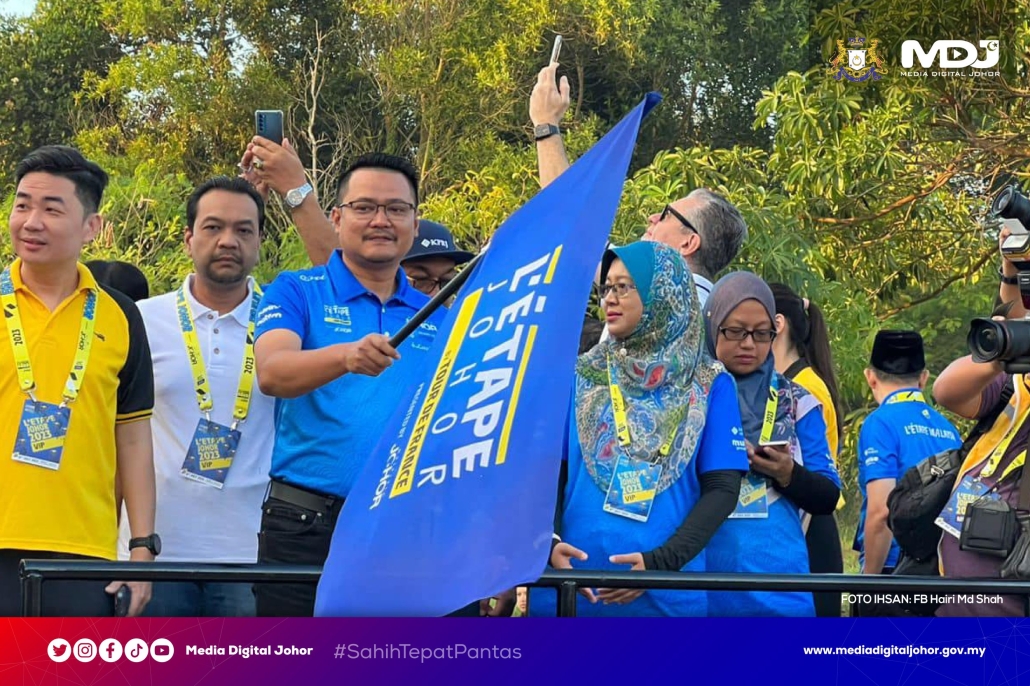 Pengerusi Jawatankuasa Belia, Sukan, Pembangunan Usahawan, Koperasi dan Sumber Manusia Negeri Johor, Mohd Hairi Mad Shah selaku wakil rasmi Menteri Besar Johor hadir menyempurnakan flag off edisi kedua perlumbaan itu. | Foto ihsan Facebook Hairi Md Shah