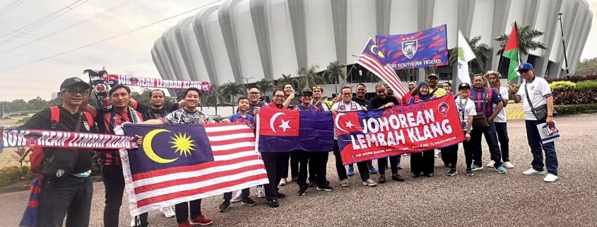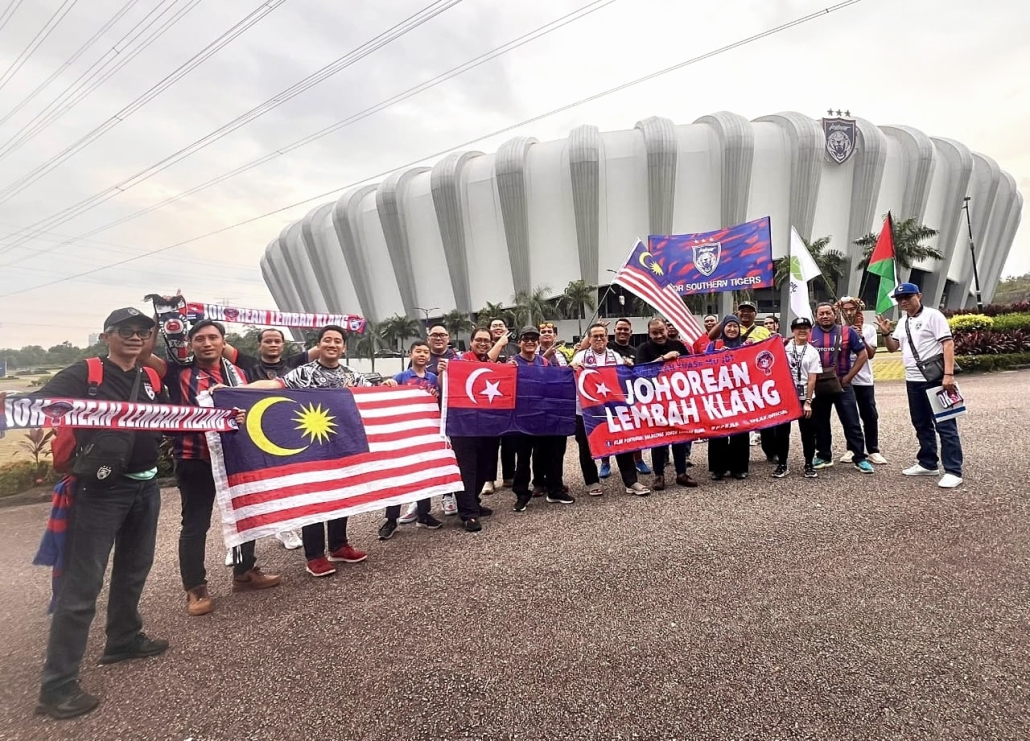 Bagi Kelab Penyokong Bola Sepak Johor Lembah Klang (KPBJLK), setiap aksi ‘home’ tetap dianggap ‘away’, namun semangat mereka tidak luntur untuk menyaksikan Harimau Selatan beraksi. | Foto Kelab Penyokong Bola Sepak Johor Lembah Klang (KPBJLK)