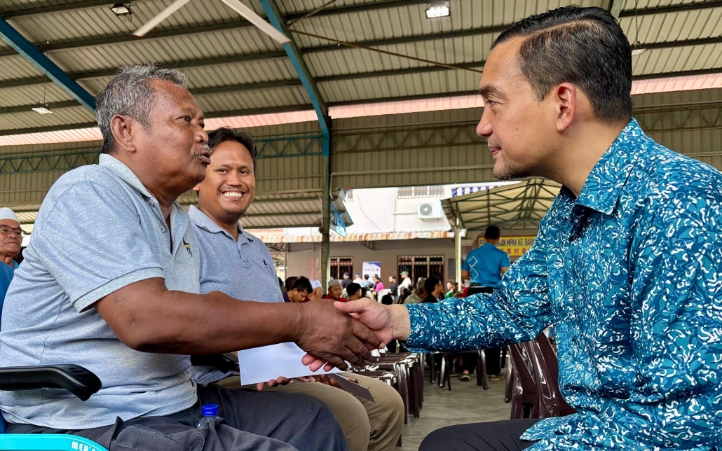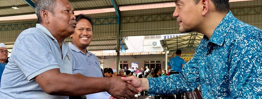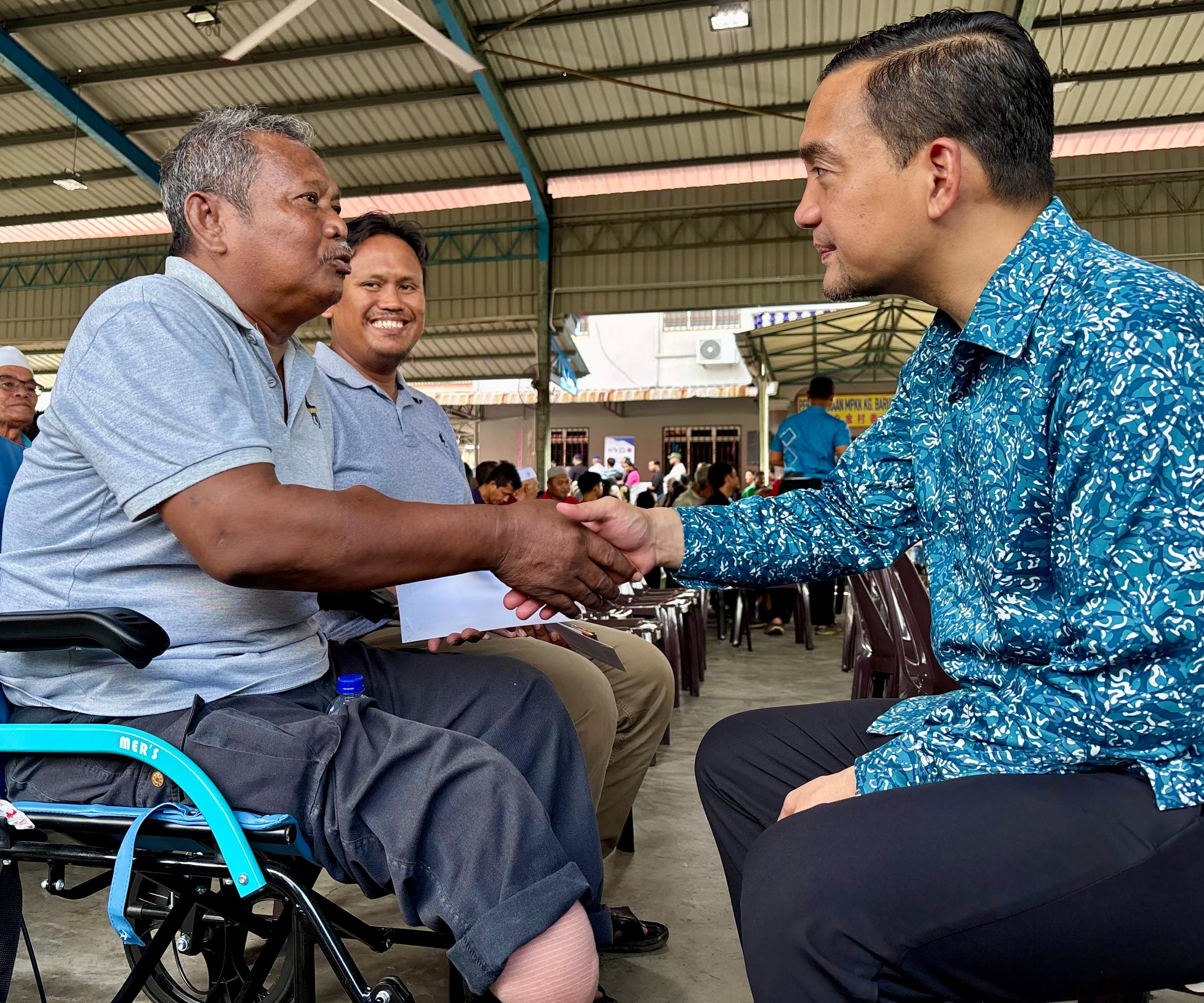 YAB Dato’ Onn Hafiz Ghazi, Menteri Besar Johor menyantuni seorang petani yang menerima Bantuan Kasih Johor dalam program yang berlangsung di Kampung Baru, Simpang Renggam, Sabtu lalu. | Foto MDJ Imran Razib