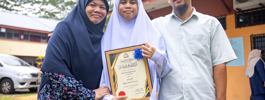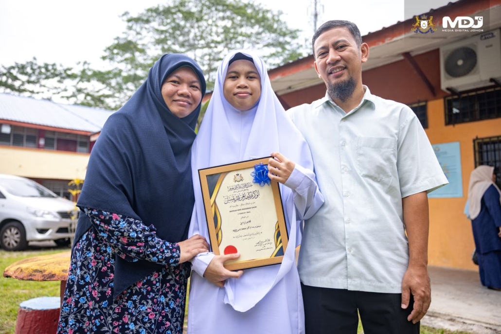 Mufidah Mohamad Saleh (tengah) diumumkan sebagai pelajar terbaik Sijil Darjah Enam Agama (SDEA) Tahun 2023. | Foto MDJ Nurina Aisyah