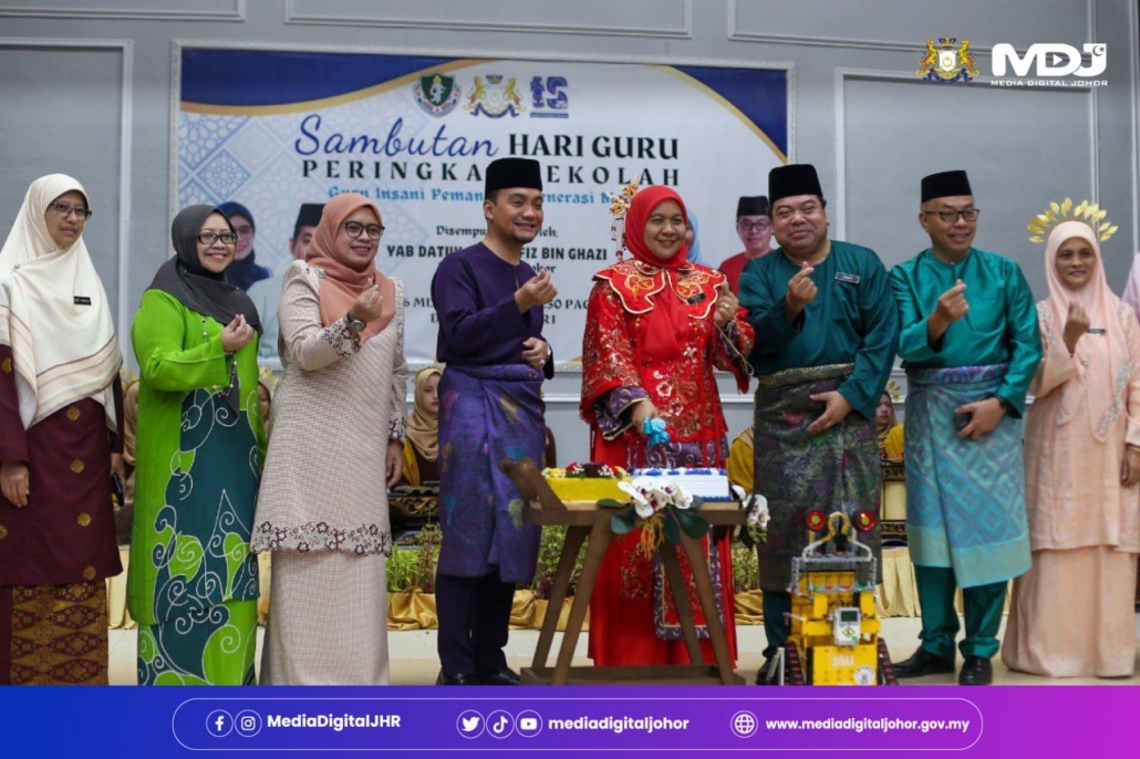Pengerusi Jawatankuasa Pendidikan, Penerangan dan Komunikasi Negeri Johor, Norlizah Noh (tiga dari kiri) mengiringi Menteri Besar, Datuk Onn Hafiz Ghazi menghadiri Majlis Sambutan Hari Guru di Sekolah Tun Fatimah, Johor Bahru hari ini.