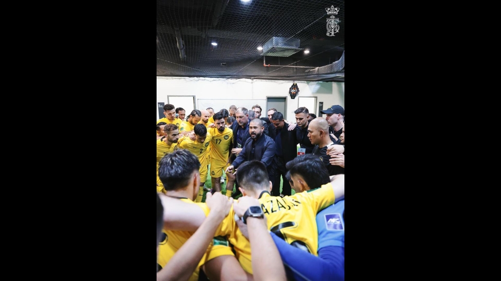DYAM Tunku Mahkota Ismail, Pemangku Sultan Johor mencemar duli turun ke bilik persalinan dan menyuntik kata-kata semangat kepada para pemain skuad Harimau Malaya. | Foto JOHOR Southern Tigers