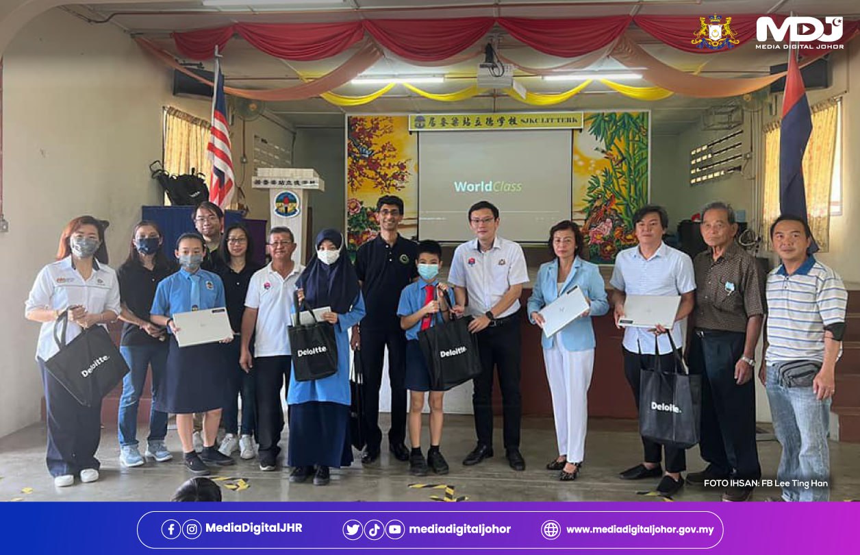 ISKANDAR PUTERI — Syarikat Deloitte Malaysia menaja 15 komputer riba kepada pelajar di Sekolah Jenis Kebangsaan Cina (SJKC) Lit Terk, dekat Kampung Baru Nyior, Kluang, semalam.