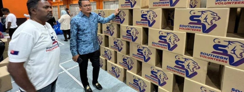 Ahli Dewan Undangan Negeri (ADUN) Larkin, Mohd Hairi Md Shah menerima bantuan bakul makanan untuk diedarkan dari Southern Volunteers (SV) dan Pejabat Parlimen Johor Bahru. | Foto ihsan Facebook Hairi Md Shah