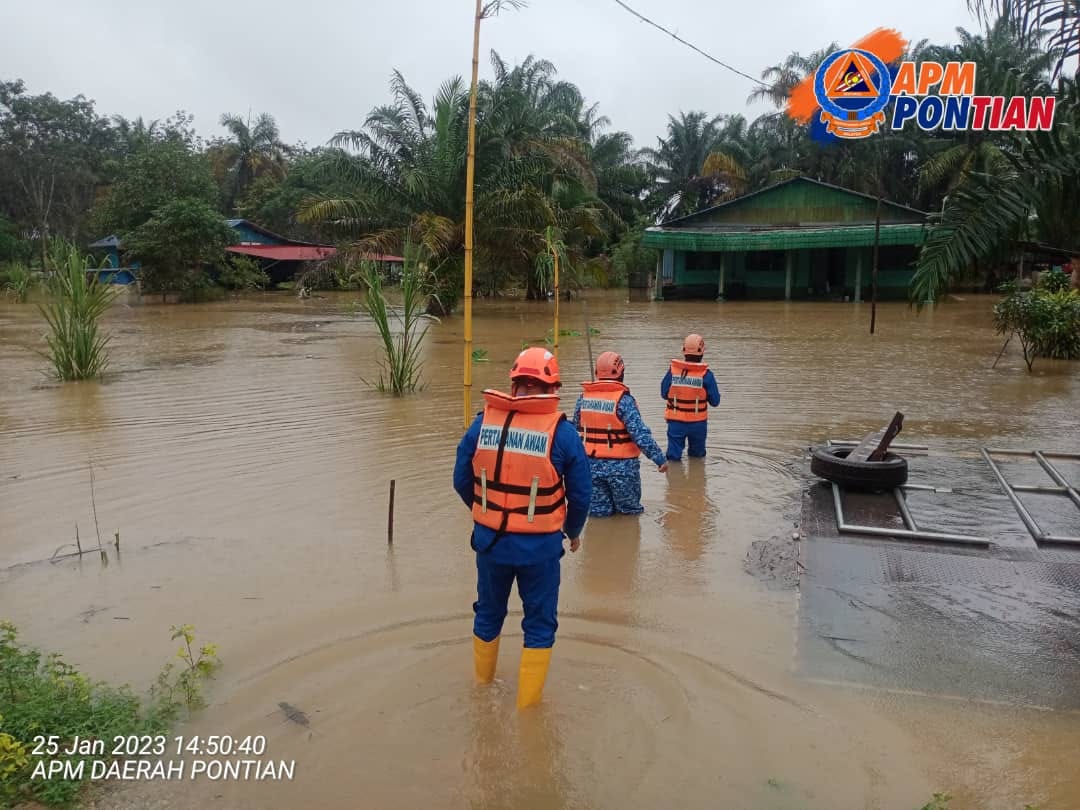 Pontian merupakan daerah terkini dilanda banjir dengan satu PPS dibuka iaitu SK Melayu Raya | Sumber gambar Facebook Angkatan Pertahanan Awam Daerah Pontian.