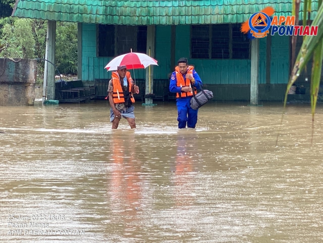 Pontian merupakan daerah terkini dilanda banjir dengan satu PPS dibuka iaitu SK Melayu Raya | Sumber gambar Facebook Angkatan Pertahanan Awam Daerah Pontian.