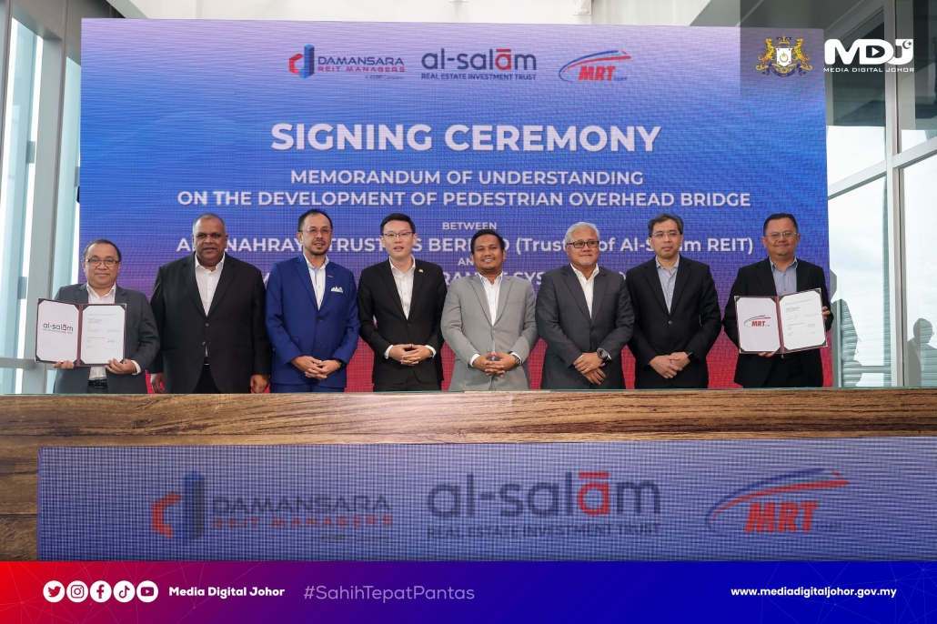 JOHOR BAHRU — Al-Salam REIT, sebuah amanah pelaburan hartanah tersenarai milik majoriti Kumpulan Syarikat Johor Corporation (JCorp) hari ini, menandatangani memorandum persefahaman (MoU) dengan Mass Rapid Transit Corporation Sdn. Bhd. (MRT Corp).