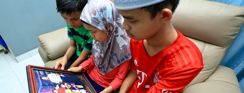 Anak sulung Allahyarham YM Ungku Mohd Zaffrin Ungku Mohd Zaman, YM Ungku Muhamad Nadzim Ungku Muhamad Zaffrin, 15, bersama dua adiknya, YM Ungku Muhamad Naufal, 11, dan YM Ungku Arissa Zahra, 10. | Foto MDJ Wira Anggara