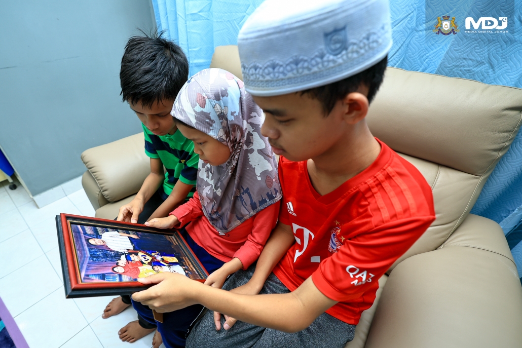 Anak sulung Allahyarham YM Ungku Mohd Zaffrin Ungku Mohd Zaman, YM Ungku Muhamad Nadzim Ungku Muhamad Zaffrin, 15, bersama dua adiknya, YM Ungku Muhamad Naufal, 11, dan YM Ungku Arissa Zahra, 10. | Foto MDJ Wira Anggara