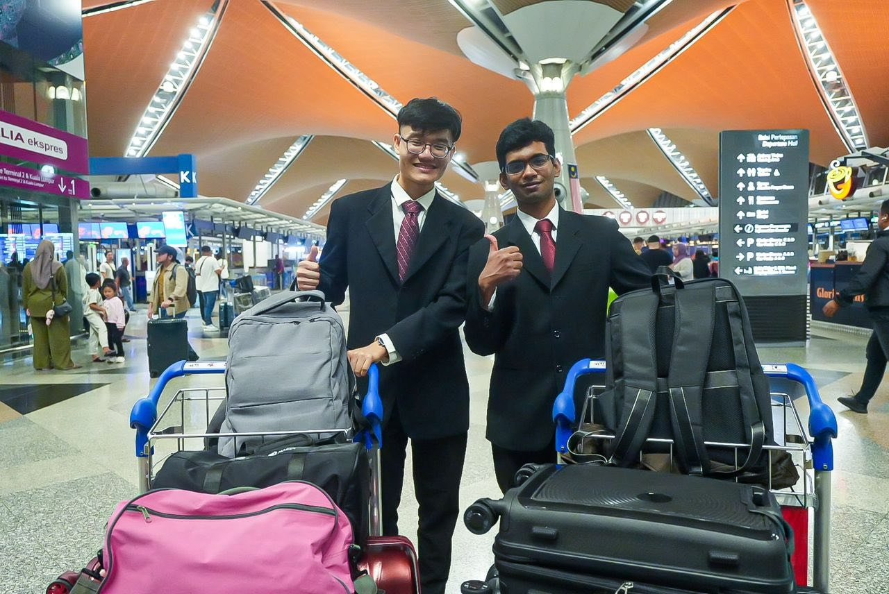 Penerima Biasiswa Orang Muda Johor (BOMJ) Kohort Pertama Tahun 2023, M. Laxmann dan Lee Chong Min berlepas ke Eropah untuk melanjutkan pengajian di institusi pendidikan tinggi terbaik dunia. | Foto FB Aznan Tamin