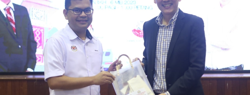 Timbalan Menteri Pembangunan Kerajaan Tempatan, Akmal Nasrullah Mohd Nasir (kiri), menerima cenderamata dari ADUN Mengkibol, Chew Chong Sin selepas merasmikan program Kluang Bandar Bahagia Masyarakat Malaysia Madani, di sini, hari ini. | Foto oleh : Saufi Razale, MDJ