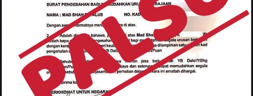 Surat sokongan palsu yang tular di media sosial melibatkan keluarga EXCO Kerajaan Johor, Mohd Hairi Mad Shah.