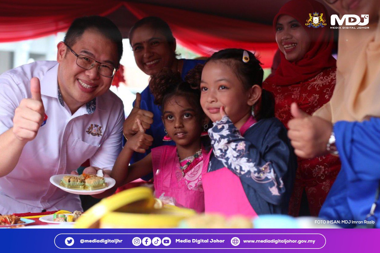Pengerusi Jawatankuasa Kesihatan dan Perpaduan Johor, Ling Tian Soon bermesra dengan pengunjung semasa merasmikan Sambutan Minggu Perpaduan Peringkat Negeri Johor, tadi. | Foto MDJ Imran Razib