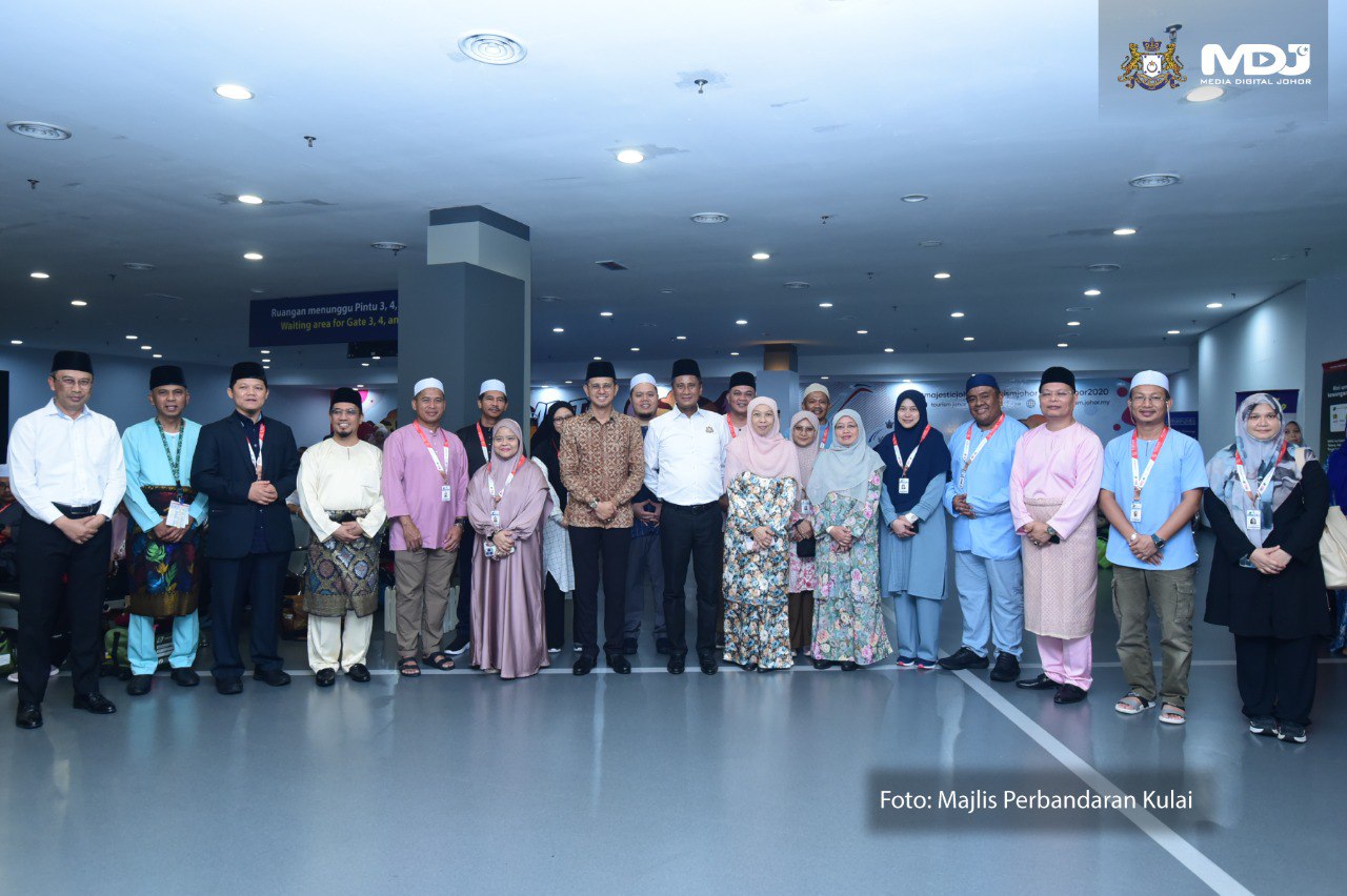Jemaah haji dari kumpulan pertama Rombongan Kerajaan Johor (RKJ) selamat berlepas dari Lapangan Terbang Antarabangsa Senai (LTAS) ke Lapangan Terbang Antarabangsa Kuala Lumpur (KLIA). | Foto Majlis Perbandaran Kulai