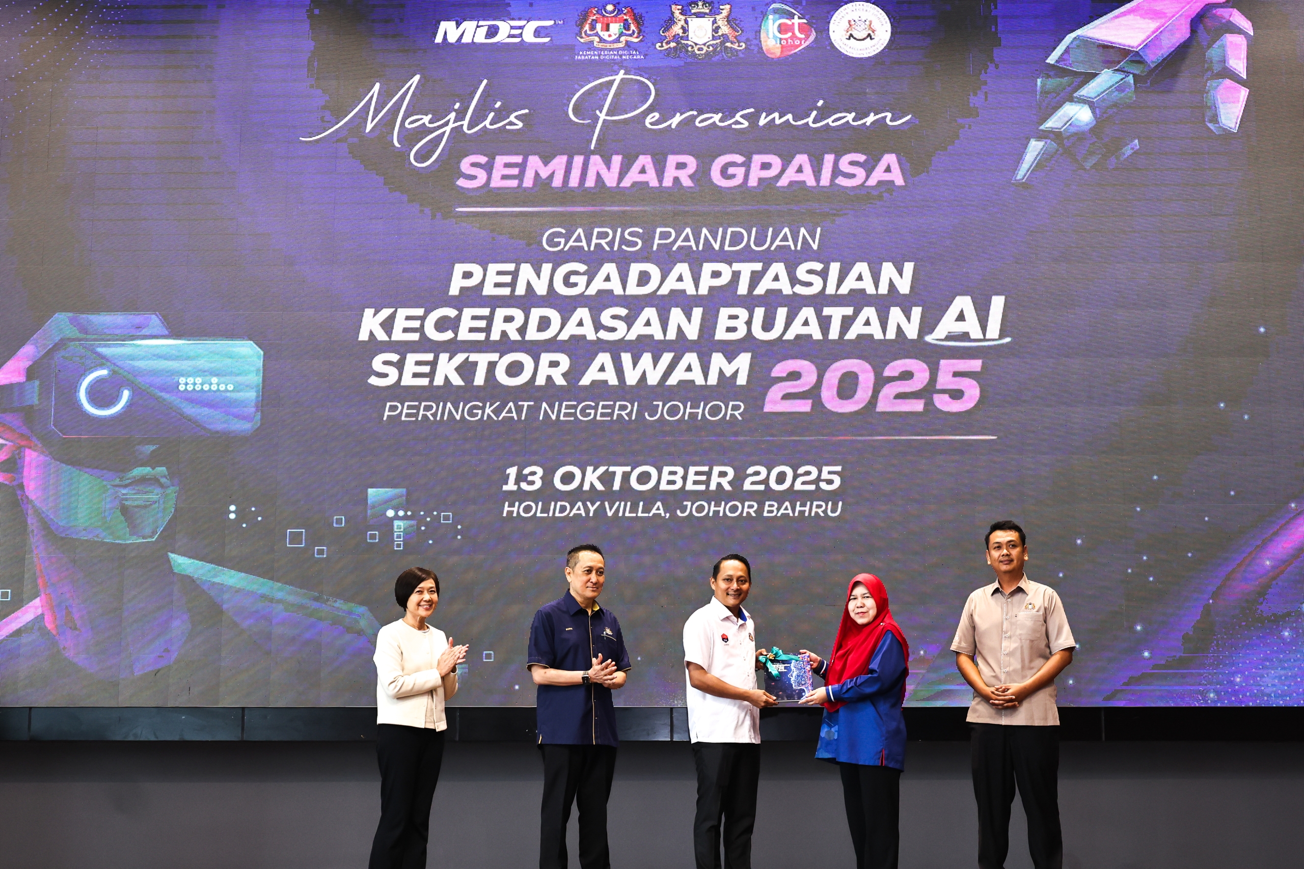 Terdahulu, YB Tuan Aznan Tamin, Pengerusi Jawatankuasa Pendidikan dan Penerangan Negeri Johor hadir menyempurnakan Majlis Perasmian Seminar Garis Panduan Pengadaptasian Kecerdasan Buatan AI Sektor Awam Peringkat Negeri Johor Tahun 2025 di Hotel Holiday Villa, Johor Bahru.