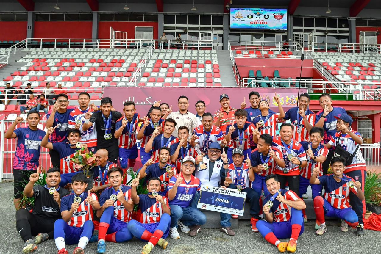 #IskandarPuteri – Pasukan bola sepak Majlis Kebajikan dan Sukan Anggota-Anggota Kerajaan Malaysia (MAKSAK) Negeri Johor mengharumkan nama negeri apabila dinobatkan sebagai juara Kejohanan Bola Sepak MAKSAK Peringkat Kebangsaan 2025 yang berlangsung pada 12 hingga 14 Jun lalu di Kota Bharu, Kelantan.