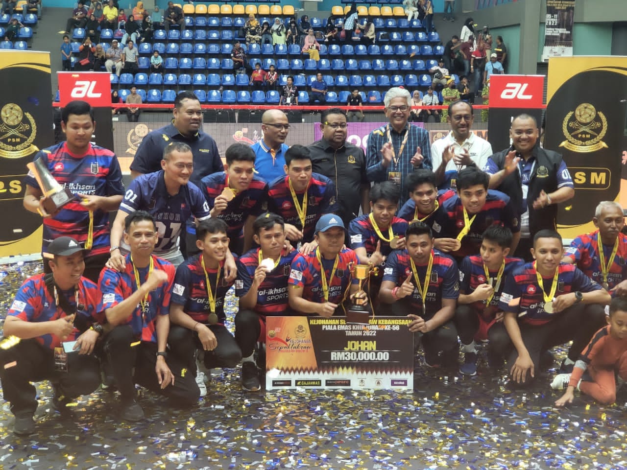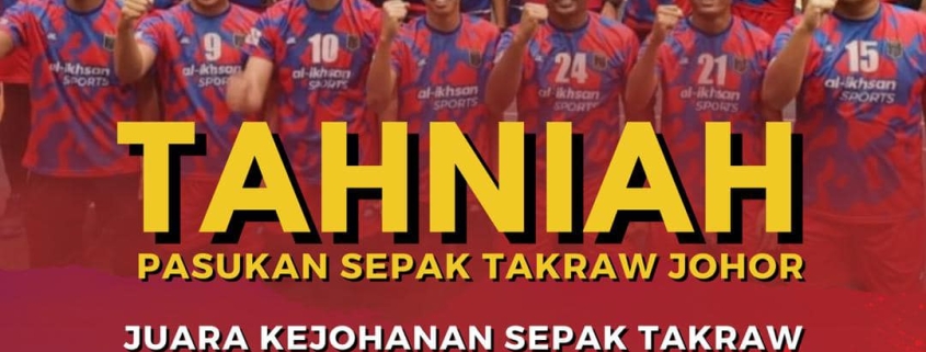 “Alhamdulillah penantian 56 tahun berakhir! Johor merangkul gelaran Juara Kejohanan Sepak Takraw Kebangsaan Piala Emas Khir Johari selepas menewaskan pasukan ATM petang tadi (semalam).