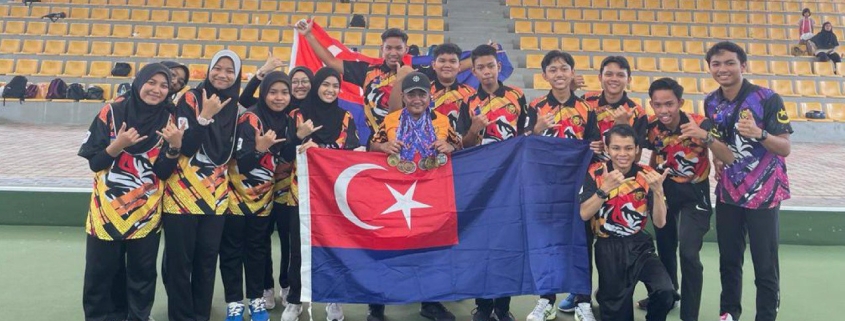 Pasukan Johor cemerlang mendominasi acara boling padang apabila muncul juara keseluruhan Karnival Bakat Kebangsaan Siri 1 Tahun 2023 di Arena Lawns Bowls, Kompleks Sukan Bukit Kiara, Kuala Lumpur, semalam. | FOTO IHSAN, Majlis Sukan Negara Johor