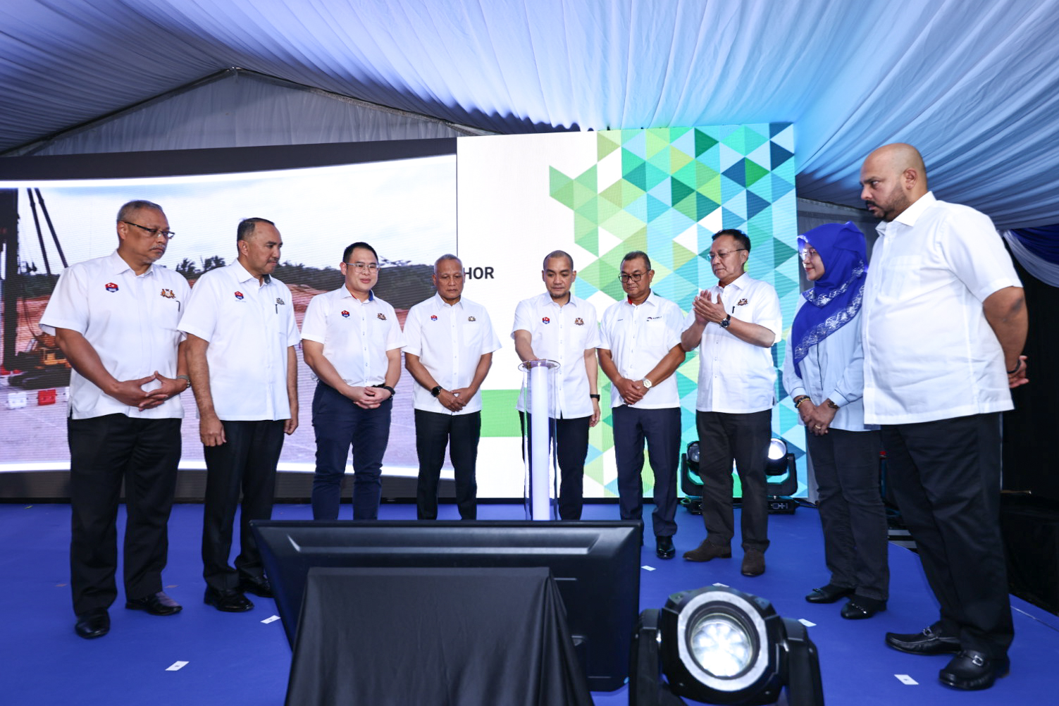 YAB Dato’ Onn Hafiz Ghazi, Menteri Besar Johor merasmikan Majlis Pecah Tanah JISWH di Mukim Ulu Sungai Johor, Kota Tinggi. | Foto MDJ Nurina Aisyah
