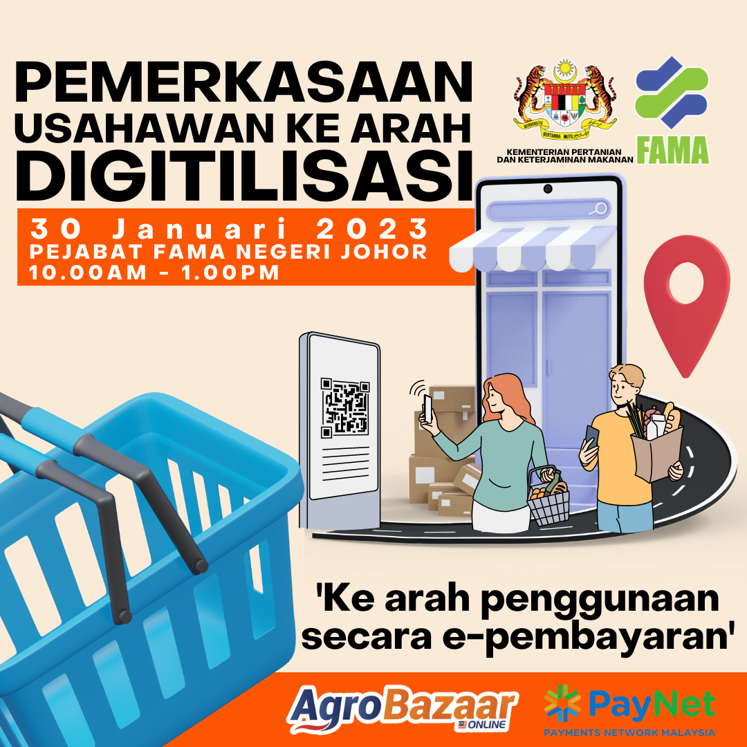 ISKANDAR PUTERI — Lembaga Pemasaran Pertanian Persekutuan (FAMA) Johor dengan usahasama Payment Network Malaysia Sdn Bhd (PAYNET) akan mengadakan Kursus Pemerkasaan Usahawan Ke Arah Digitalisasi pada 30 Januari ini.
