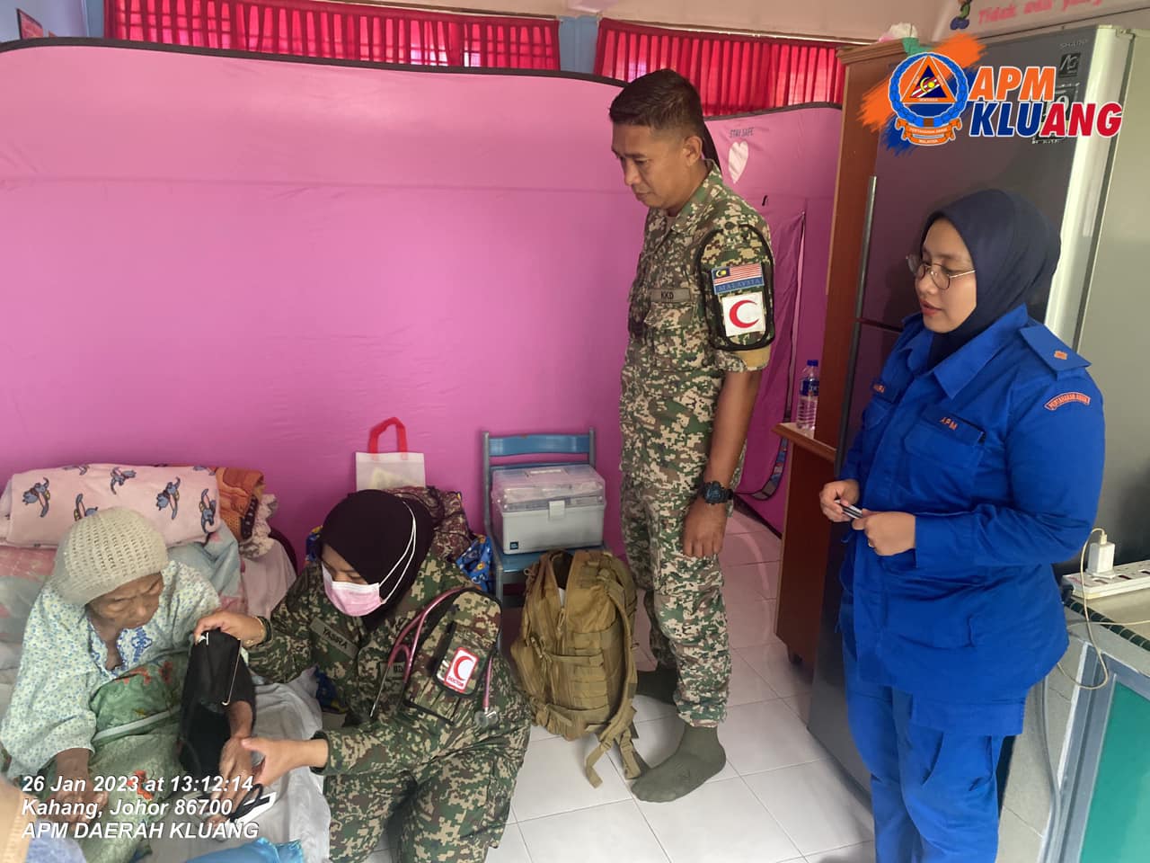 Pemeriksaan tahap kesihatan ke atas mangsa banjir terutama golongan rentan secara berkala di PPS antara gerak rutin dilakukan | Sumber gambar Apm Kluang.