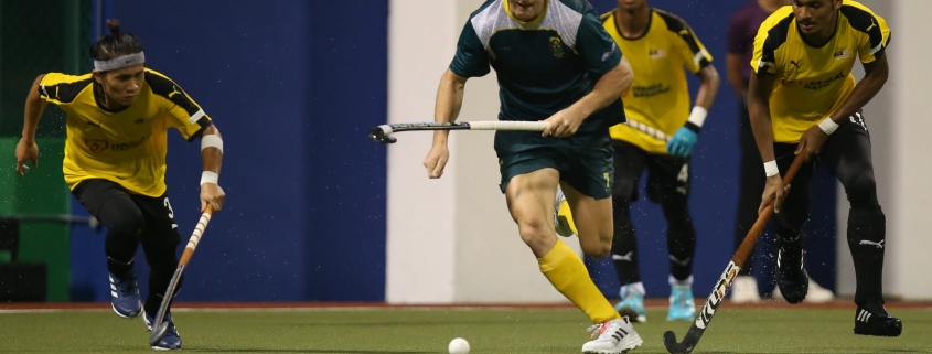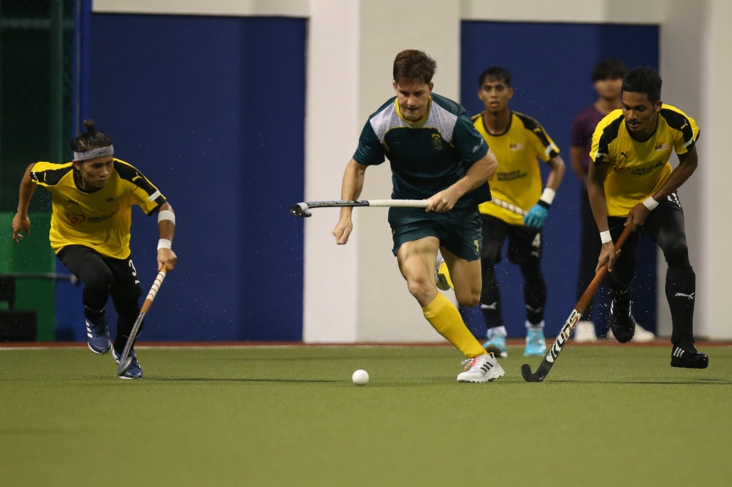 Pemain skuad bawah 21 tahun negara cuba mengejar pemain pasukan Afrika Selatan dalam perlawanan ketiga Kejohanan Hoki Piala Sultan Johor 2022 | Sumber sultanjohorcup.com
