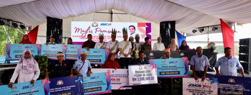Kerajaan Negeri turut menyampaikan peruntukan berjumlah RM900,000 bagi melaksanakan Program Kampung Orang Asli Sejahtera serta penganjuran Program Komuniti, Kebudayaan dan Adat Resam Masyarakat Orang Asli Negeri Johor.