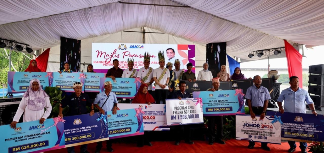 Kerajaan Negeri turut menyampaikan peruntukan berjumlah RM900,000 bagi melaksanakan Program Kampung Orang Asli Sejahtera serta penganjuran Program Komuniti, Kebudayaan dan Adat Resam Masyarakat Orang Asli Negeri Johor.