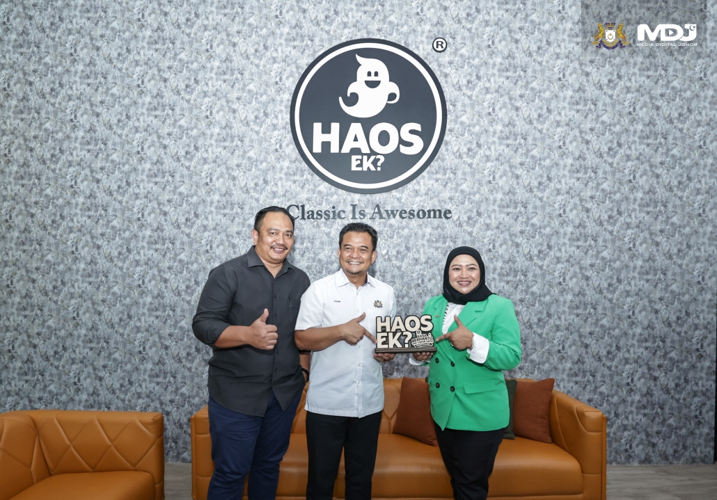 YB Dato’ Zahari Sarip, Pengerusi Jawatankuasa Pertanian, Industri Asas Tani dan Kemajuan Luar Bandar Negeri Johor (tengah) mengadakan lawatan kerja ke kilang minuman HAOS EK? di Kempas Lama, hari ini. | Foto MDJ Wira Anggara