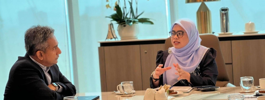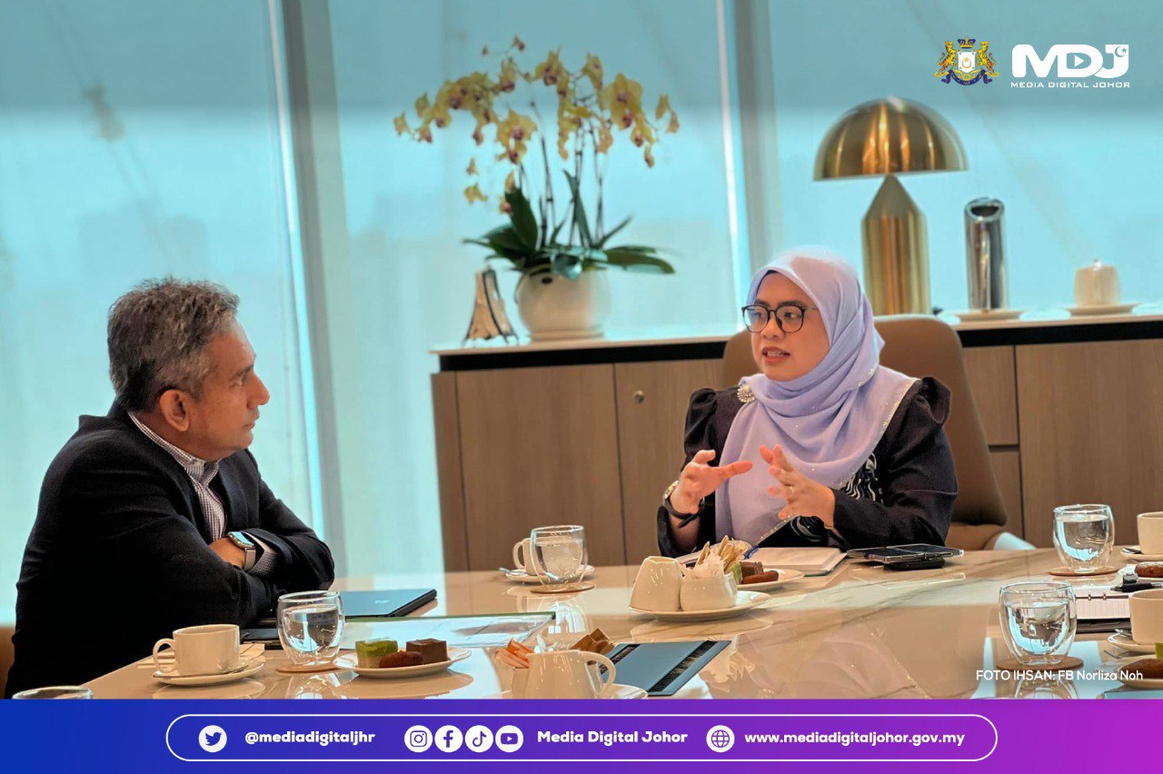 Pengerusi Jawatankuasa Pendidikan, Penerangan dan Komunikasi Negeri Johor, Norlizah Noh diberikan taklimat mengenai pelaksanaan 5G di negeri Johor, daripada pihak DNB. | Foto Ihsan FB Norliza Noh.