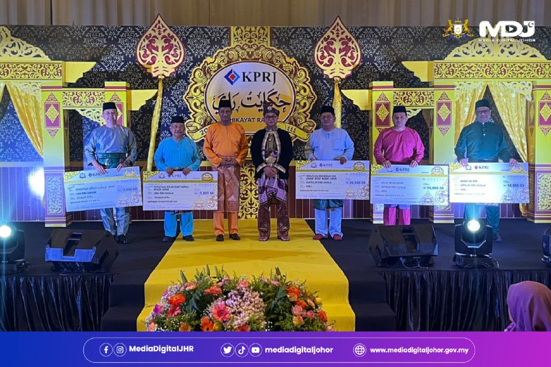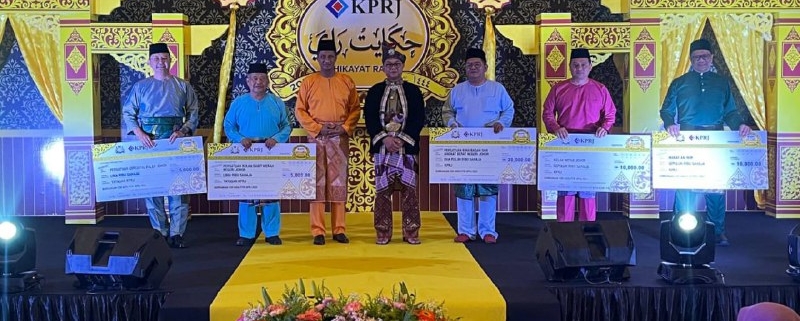 ISKANDAR PUTERI — Kumpulan Prasarana Rakyat Johor (KPRJ) Sdn. Bhd menyerahkan sumbangan kepada lima organisasi sebagai sebahagian daripada program Tanggungjawab Sosial Korporat (CSR) mereka pada Majlis Hikayat Raya Aidilfitri KPRJ di X Park Sunway Iskandar di sini, hari ini.