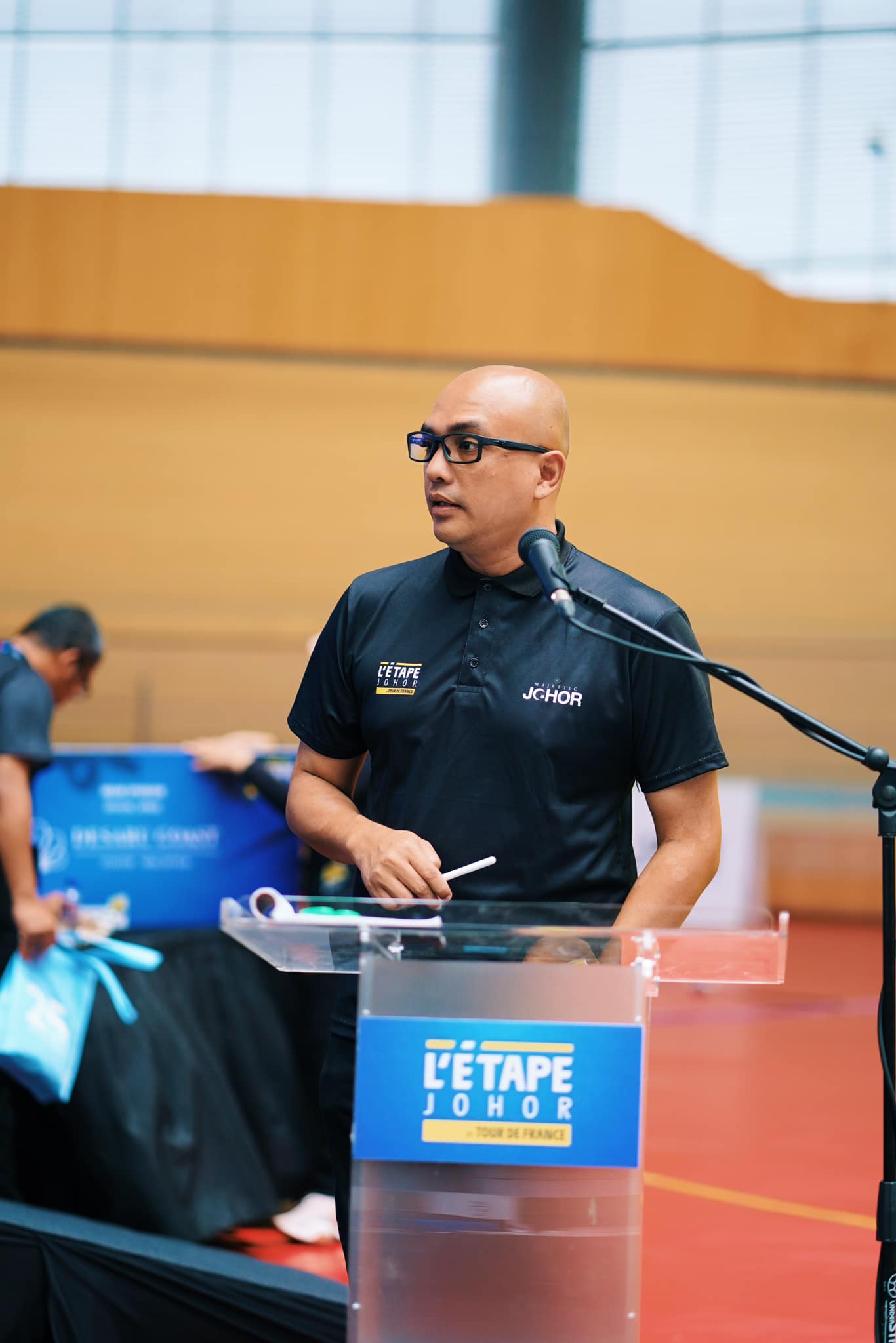 Pengerusi Jawatankuasa Belia, Sukan, Pembangunan Usahawan, Koperasi & Sumber Manusia Negeri Johor, Mohd Hairi Md Shah ketika merasmikan L’Etape Johor 2023 bulan Mei lalu. | Foto Ihsan FB Le’Tape Malaysia