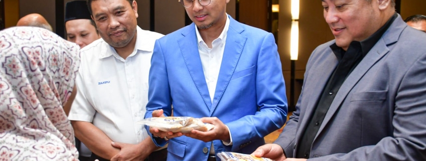 YB Mohd Fared Mohd Khalid, Pengerusi Jawatankuasa Hal Ehwal Agama Islam Negeri Johor (tengah) beramah mesra dengan usahawan tajaan MAINJ dan SIRIM. | Foto MDJ Dania Farisya