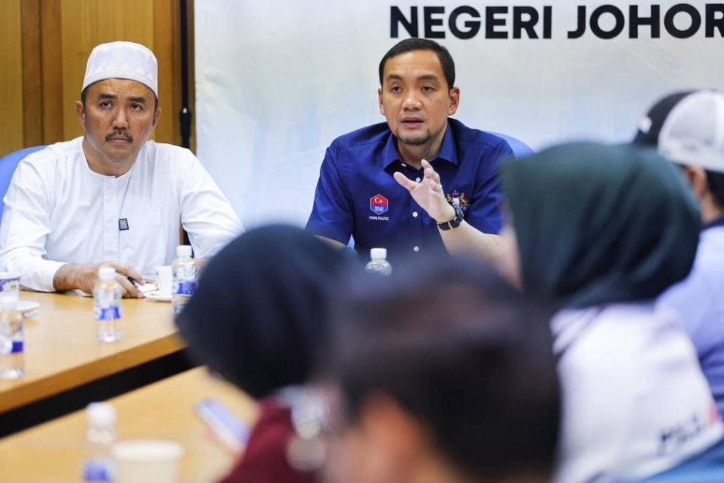 Menteri Besar Johor, Datuk Onn Hafiz Ghazi, ketika mengetuai mesyuarat khas bersama agensi-agensi berkaitan di Bilik Gerakan Bencana Johor. | Sumber foto: Facebook Onn Hafiz Ghazi.