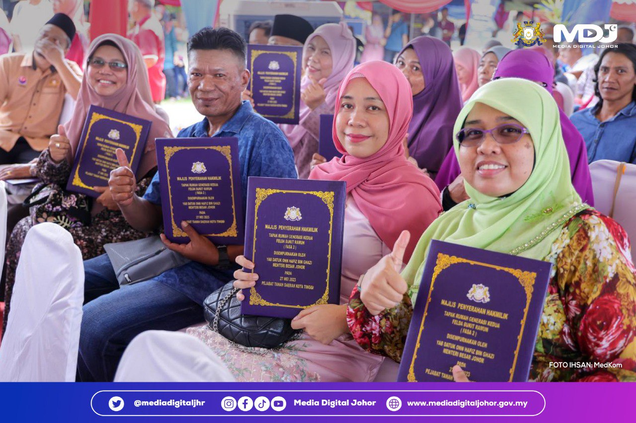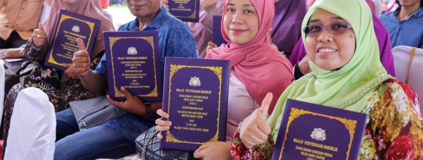 KOTA TINGGI — Penantian hampir 20 tahun kira-kira 300 penduduk terdiri daripada generasi kedua FELDA Sungai Sayong dan FELDA Bukit Ramun untuk menerima hak milik tanah masing-masing, berakhir.