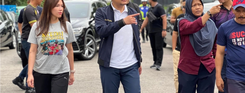 Ahli Dewan Negeri Johor Kawasan Skudai, Marina Ibrahim (kiri) bersama Menteri Besar, Datuk Onn Hafiz Ghazi meninjau keadaan flat Taman Jaya, Skudai. | Foto ihsan FB Marina Ibrahim