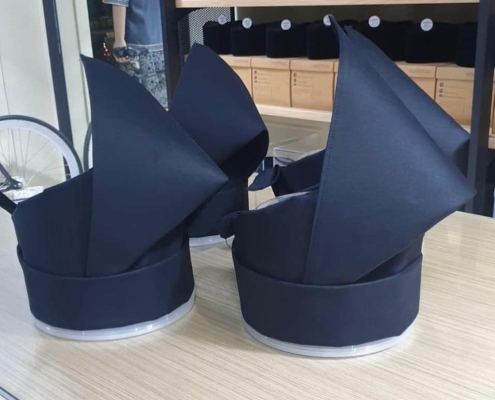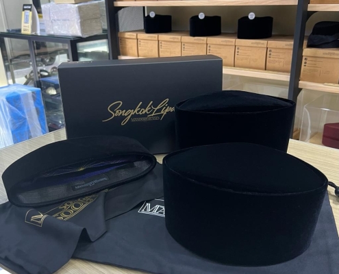 “Kami hanya menggunakan bahan asas termasuk fabrik yang bermutu tinggi. Malah, bagi keselesaan pemakai songkok, kami turut meletakkan fabrik lembut di bahagian dalam songkok bagi memastikan pelanggan berasa lebih selesa dan yakin dengan menggunakan songkok selain mereka boleh menggunakan ukuran yang tepat berdasarkan ukur lilit kepada mereka,” katanya.