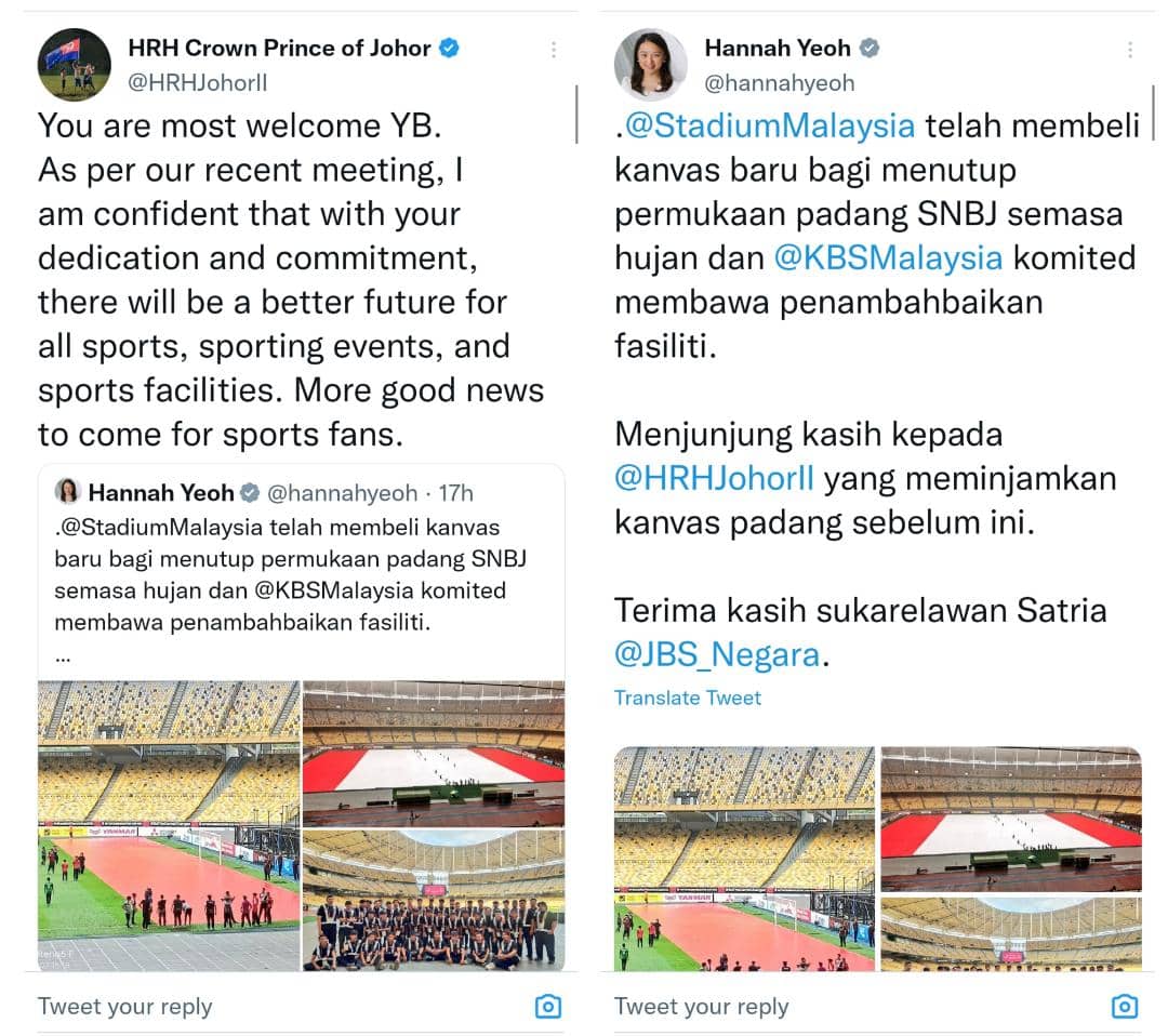 “Lebih banyak berita baik akan datang untuk peminat sukan,” titah baginda Tunku dalam ciapan balas kepada Hannah menerusi akaun Twitter semalam.