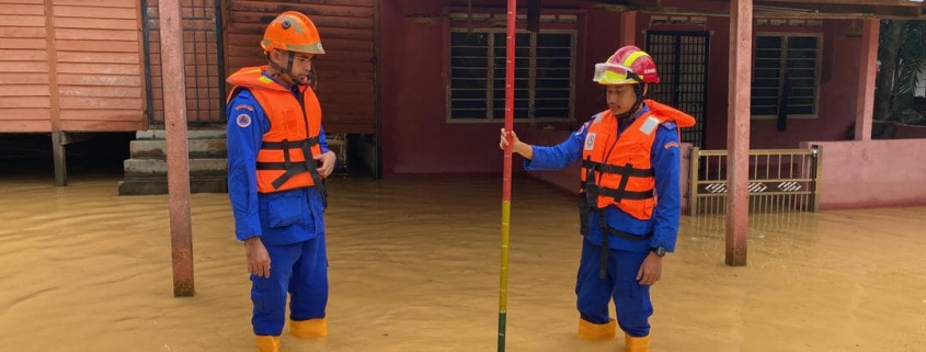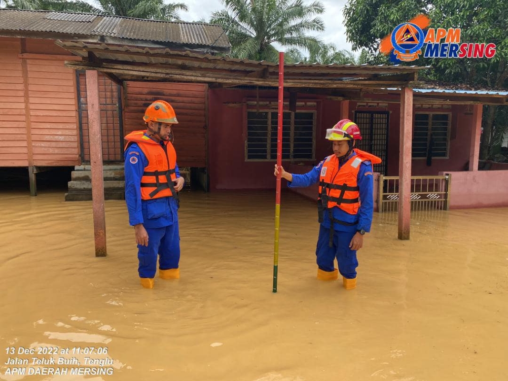 Anggota Angkatan Pertahanan Awam Malaysia Daerah Mersing melakukan pemantauan banjir | Sumber Facebook APM Mersing.