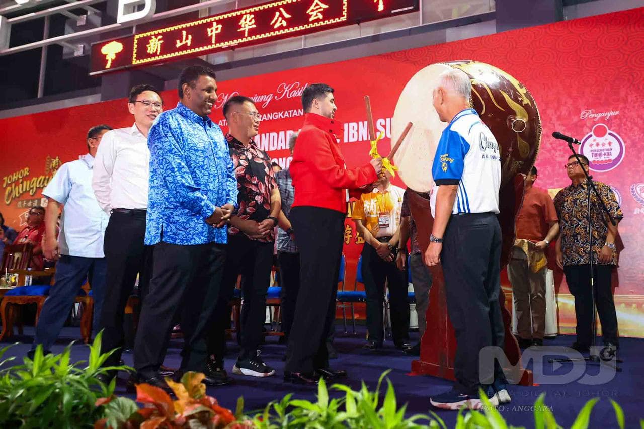 Turut hadir, YB Tuan K. Raven Kumar, Pengerusi Jawatankuasa Perpaduan, Warisan dan Budaya Negeri Johor; YB Tuan Lee Ting Han, Pengerusi Jawatankuasa Pelaburan, Perdagangan, Hal Ehwal Pengguna dan Sumber Manusia Negeri Johor serta YBhg. Encik How Sow Tong, Presiden Persekutuan Tiong Hua Johor Bahru.
