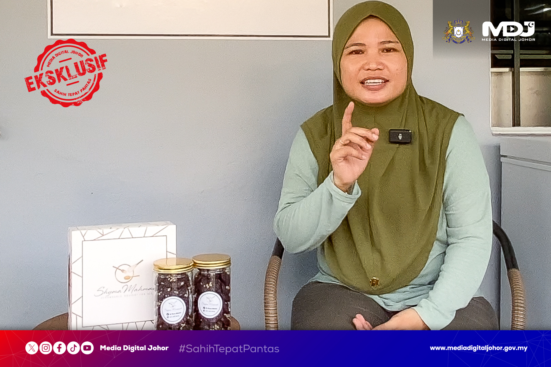 Usahawan Makanan Sediaan Rumah, Shyma Mahmud berkata, bantuan GOL yang diselia oleh Perbadanan Usahawan Johor (PUJB) telah menukarkan statusnya daripada hanya seorang suri rumah biasa kepada usahawan kecil yang berjaya. Foto Ihsan Shyma Mahmud.