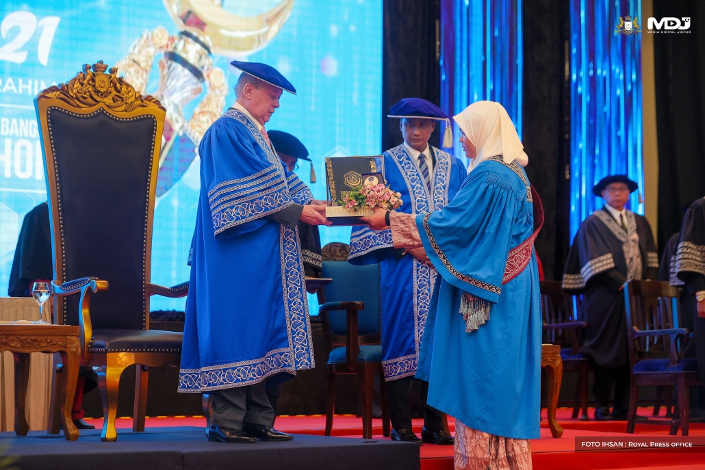 Terdahulu, DYMM Sultan Johor, Sultan Ibrahim Ibni Almarhum Sultan Iskandar yang dimasyhurkan sebagai Canselor KUIJSI pada Majlis Konvokesyen KUIJSI Ke-21, berkenan untuk menyampaikan Anugerah Graduan Terbaik kepada Nurul Shafiqah.