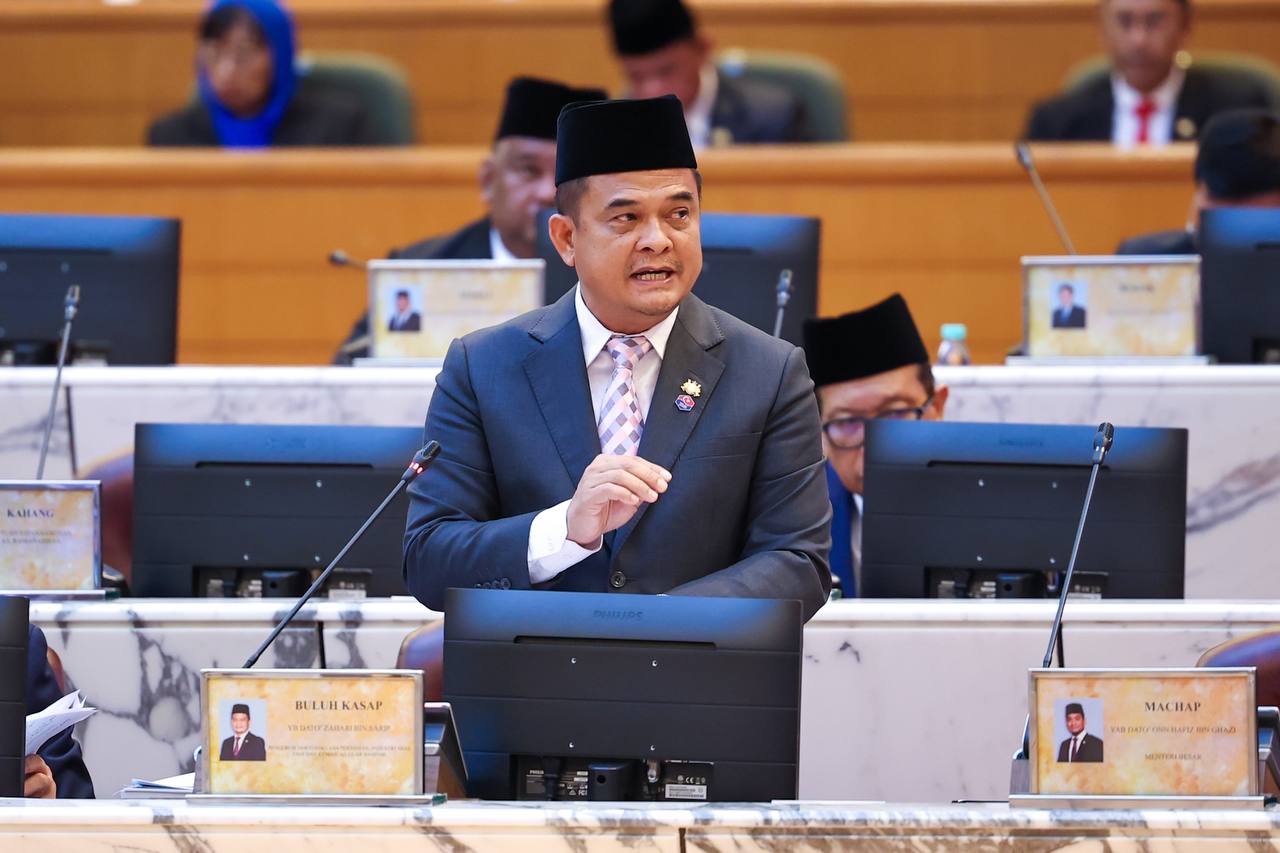 YB Dato’ Zahari Sarip, Pengerusi Jawatankuasa Pertanian, Industri Asas Tani dan Kemajuan Luar Bandar Negeri Johor menerusi jawapan bertulis mengemukakan beberapa langkah strategik dalam usaha memperkukuh industri hiliran di Johor pada Pembukaan Rasmi Penggal Persidangan Keempat Dewan Negeri Johor Ke-15 di Bangunan Sultan Ismail, Kota Iskandar.. | Foto MDJ Wira Anggara