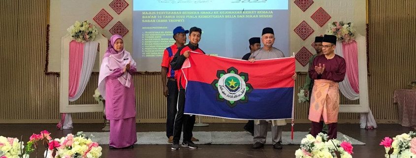 Pengarah JAINJ, Dato’ Md Rofiki Dato’ A Shamsuddin menyerahkan bendera kepada Ketua Pasukan Kriket Sekolah Menengah Agama Kerajaan Johor Kluang yang akan bertanding di Kejohanan Kriket di Sabah / Gambar Ihsan Bahagian Pendidikan Islam JAINJ