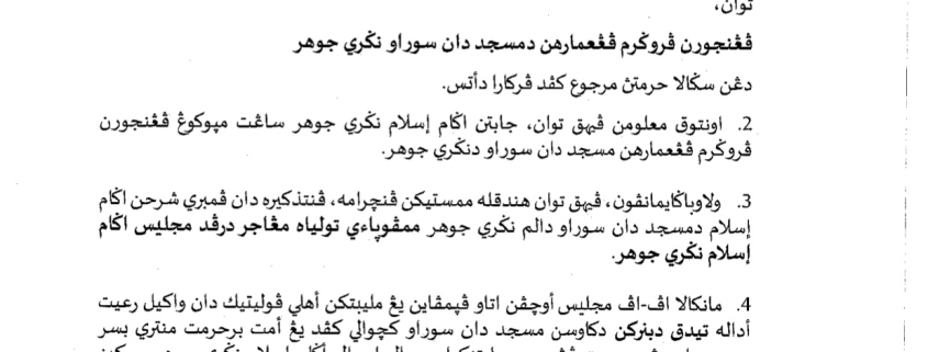 Sebarang Majlis ucapan atau penyampaian melibatkan ahli politik dan wakil rakyat tidak dibenarkan kecuali kepada YAB Menteri Besar dan YB Pengerusi Jawatankuasa Hal Ehwal Agama Islam Negeri Johor.