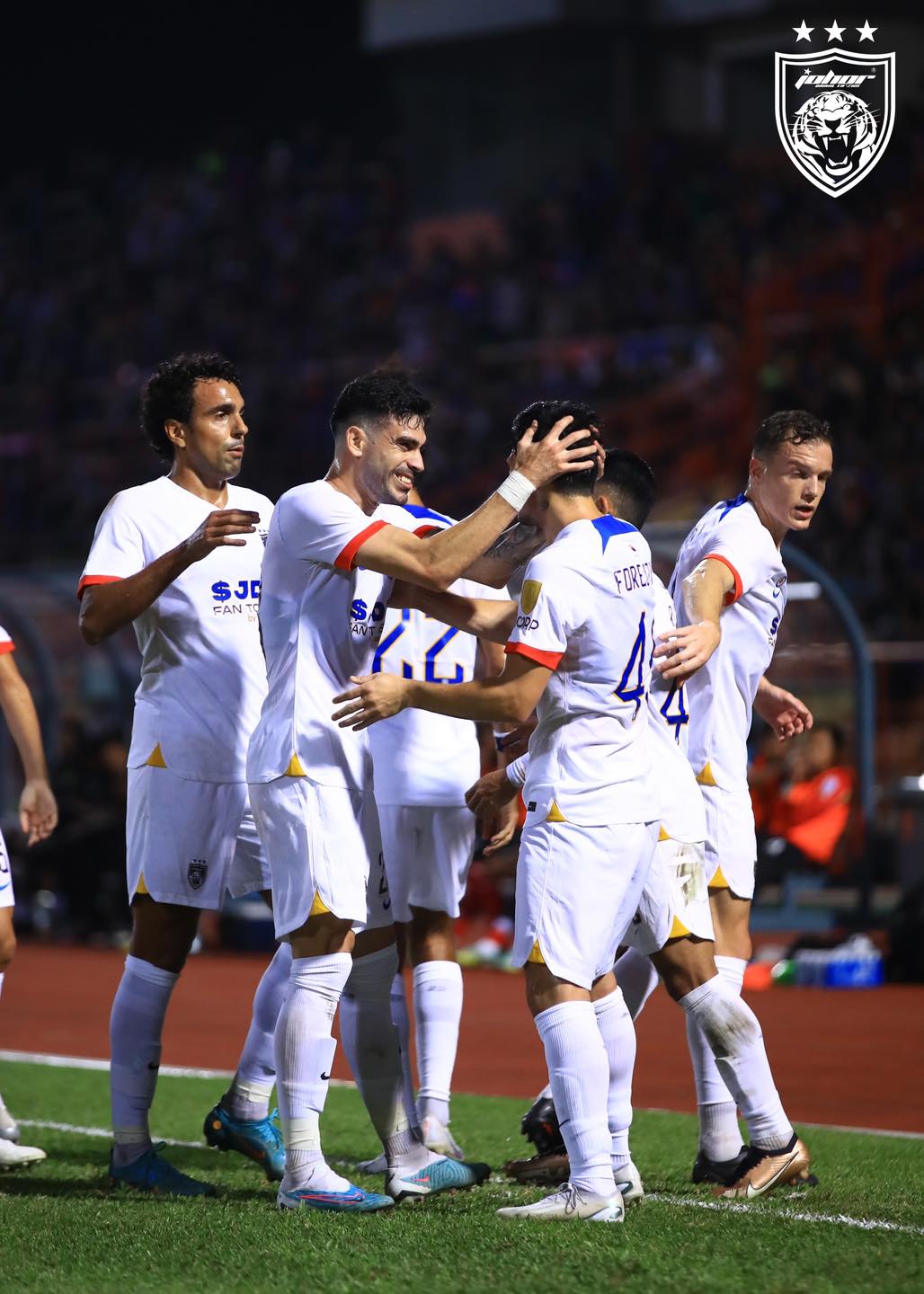 Pasukan JDT meraikan jaringan gol Fernando Forestieri. | Sumber gambar: JOHOR Southern Tigers.