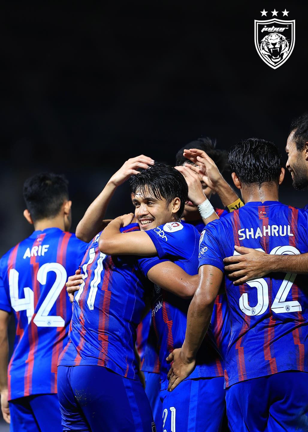 Pemain-pemain JDT meraikan jaringan kedua daripada Safawi Rasid | Sumber Facebook JOHOR Southern Tigers